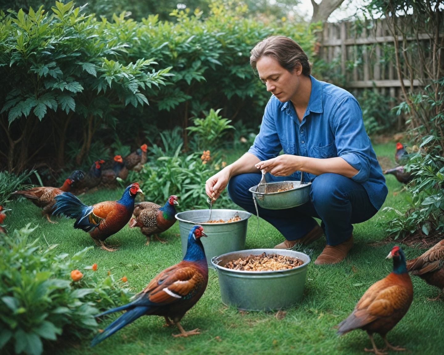 Prepare as refeições com base nas necessidades diárias de cada faixa etária dos faisões, sempre incorporando uma variedade de alimentos. Utilize uma mistura de ração comercial e alimentos naturais, ajustando conforme necessário para atender às mudanças sazonais ou de desenvolvimento.